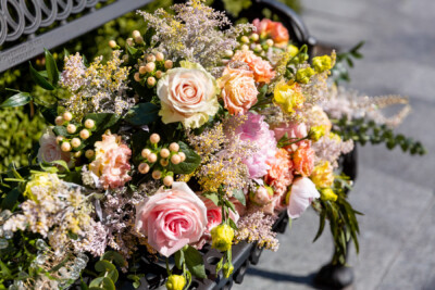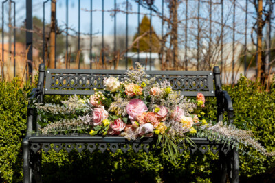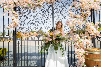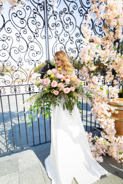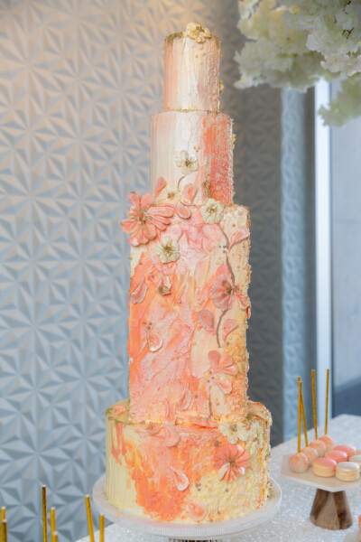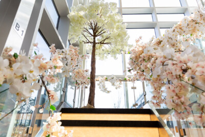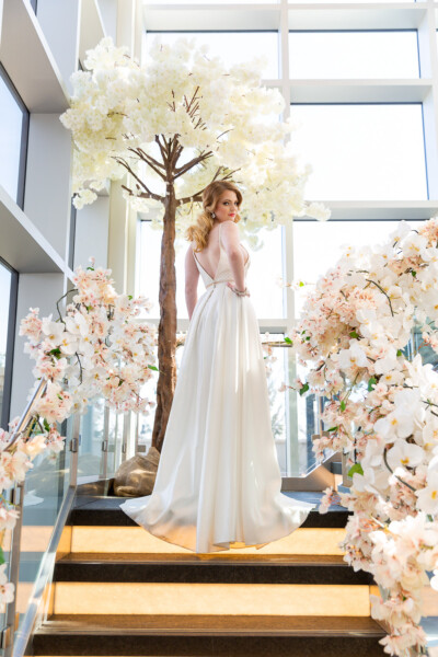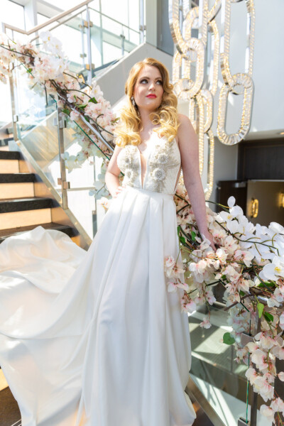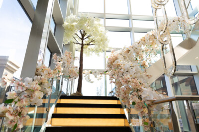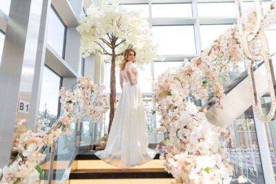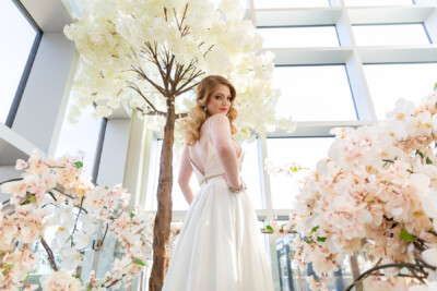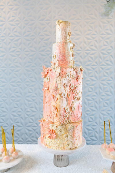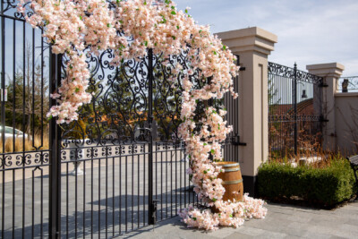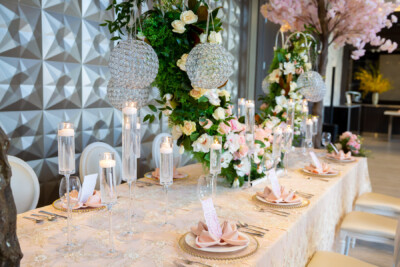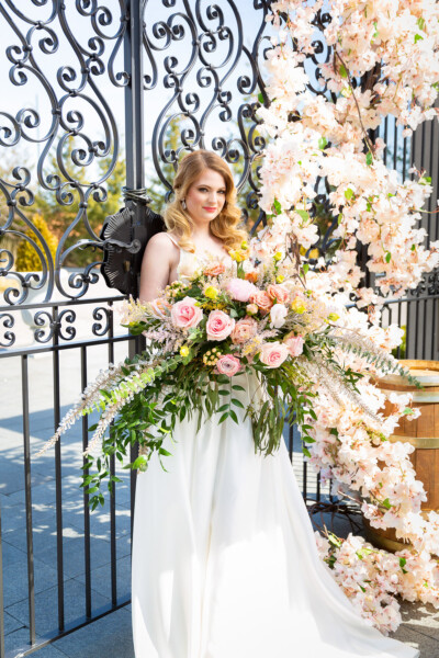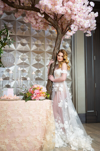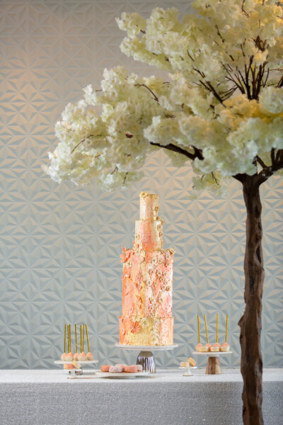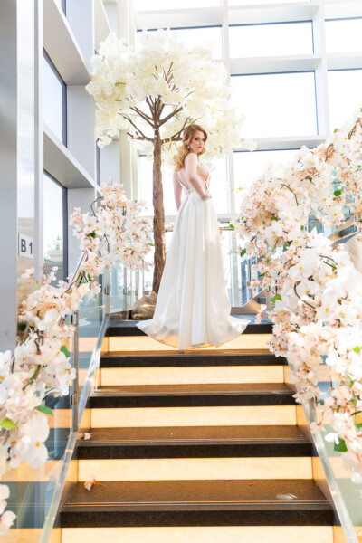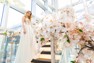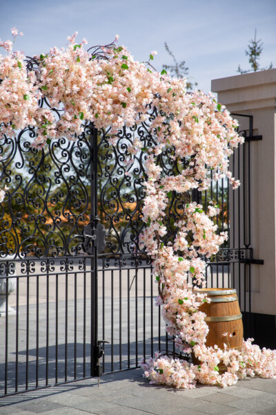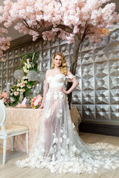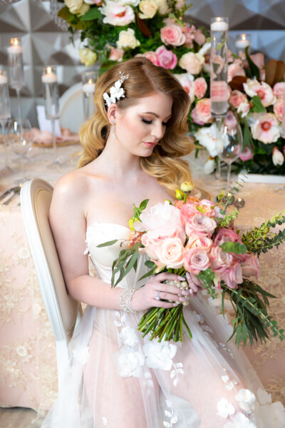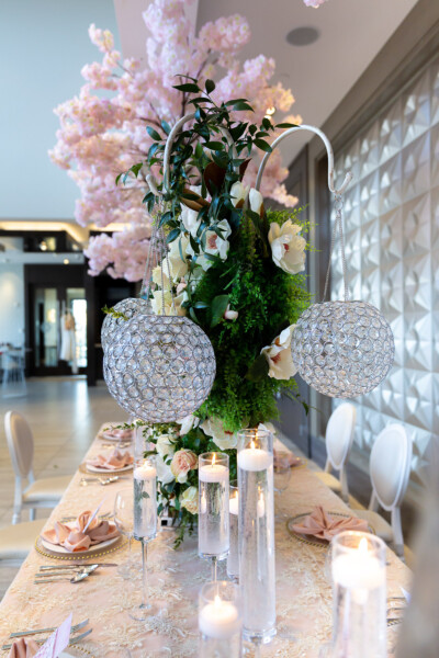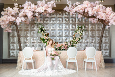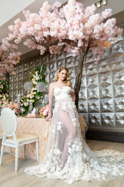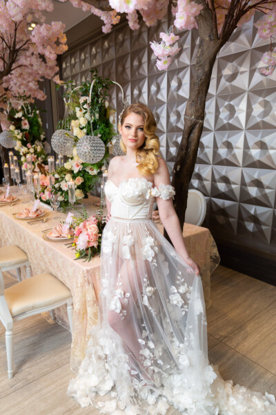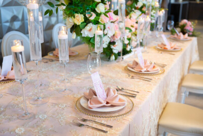 Stationery with white filigree laser-cut sleeves, lots of pretty pink and coral colors, and cherry blossoms everywhere made this a beautiful shoot.